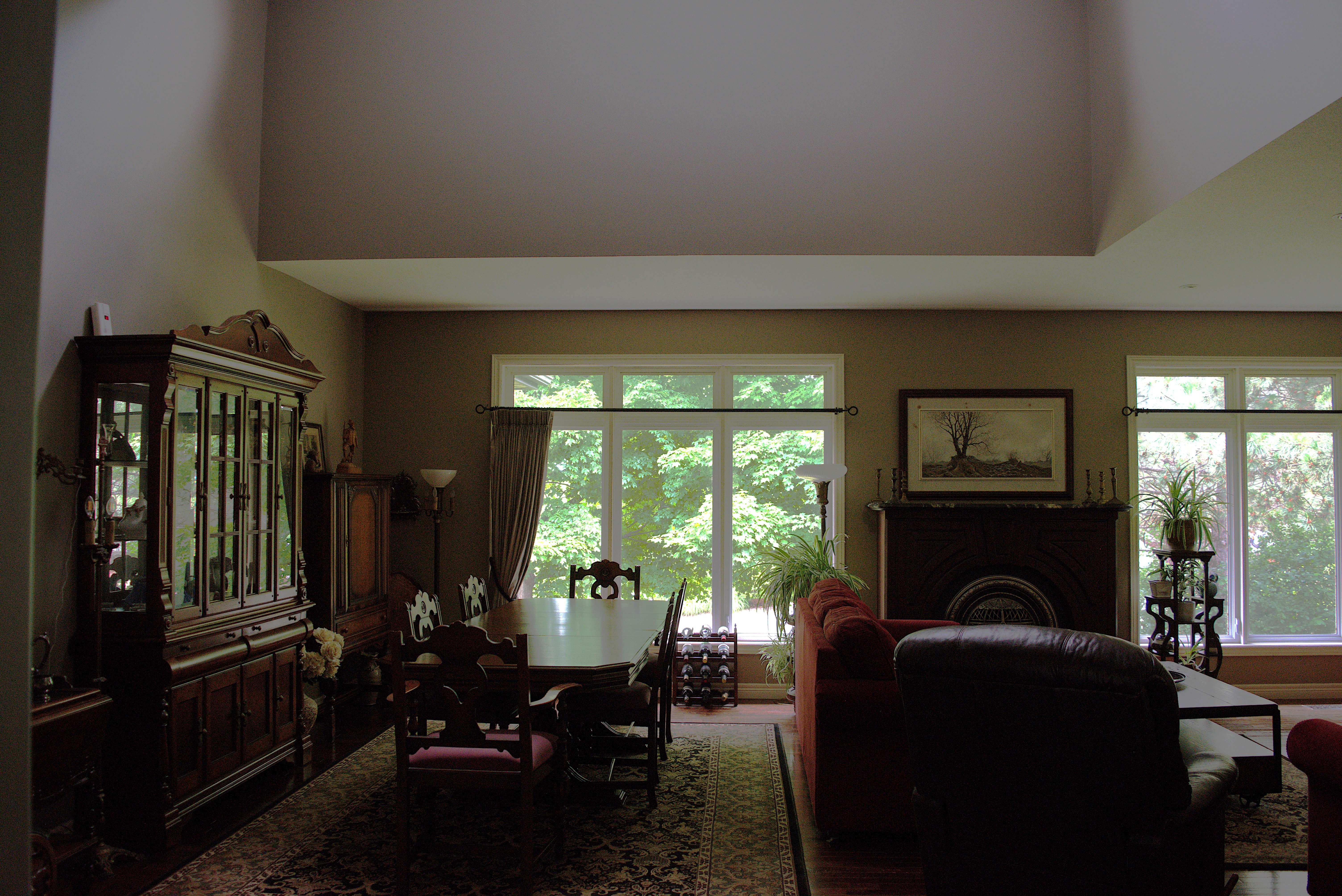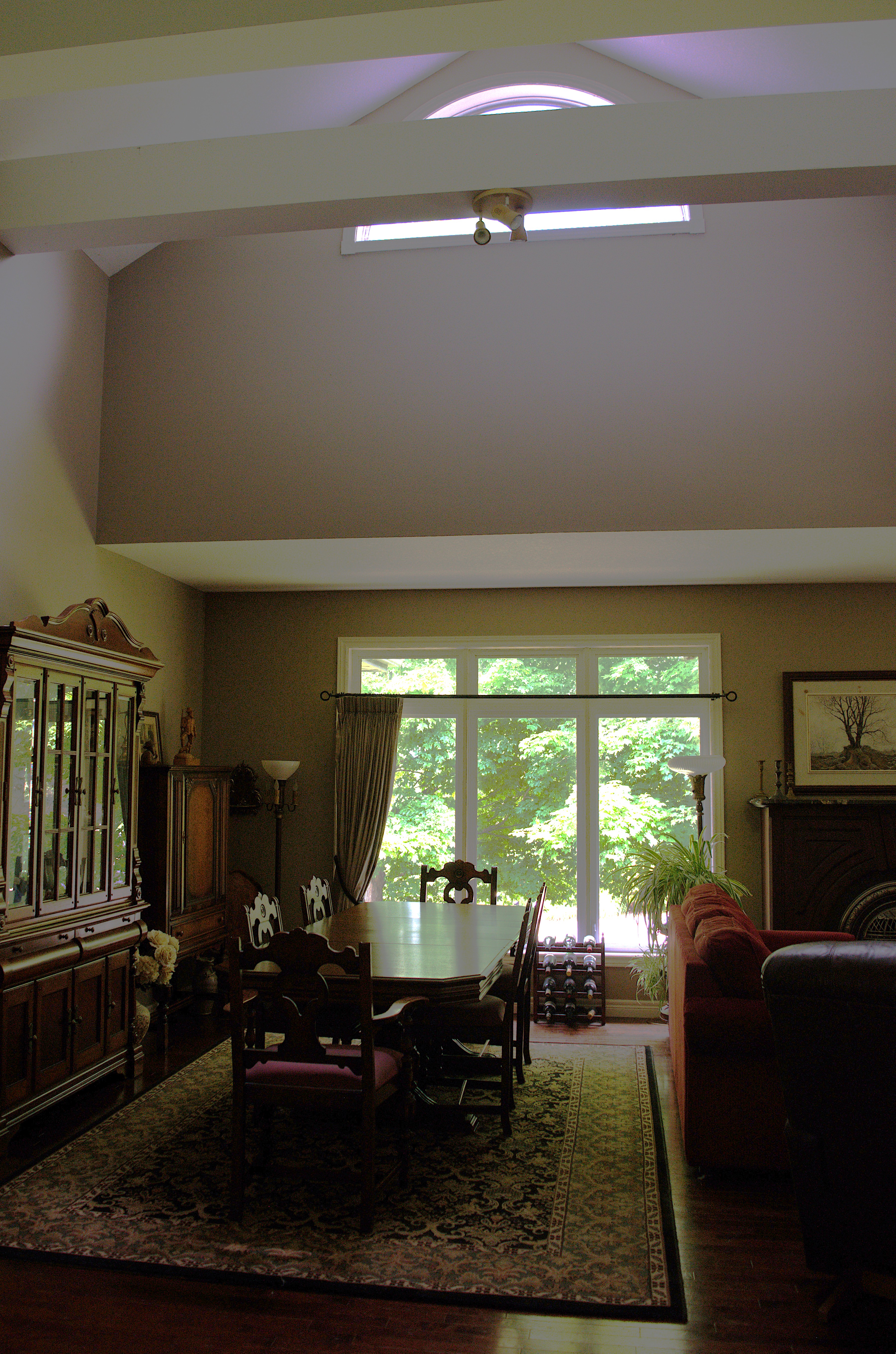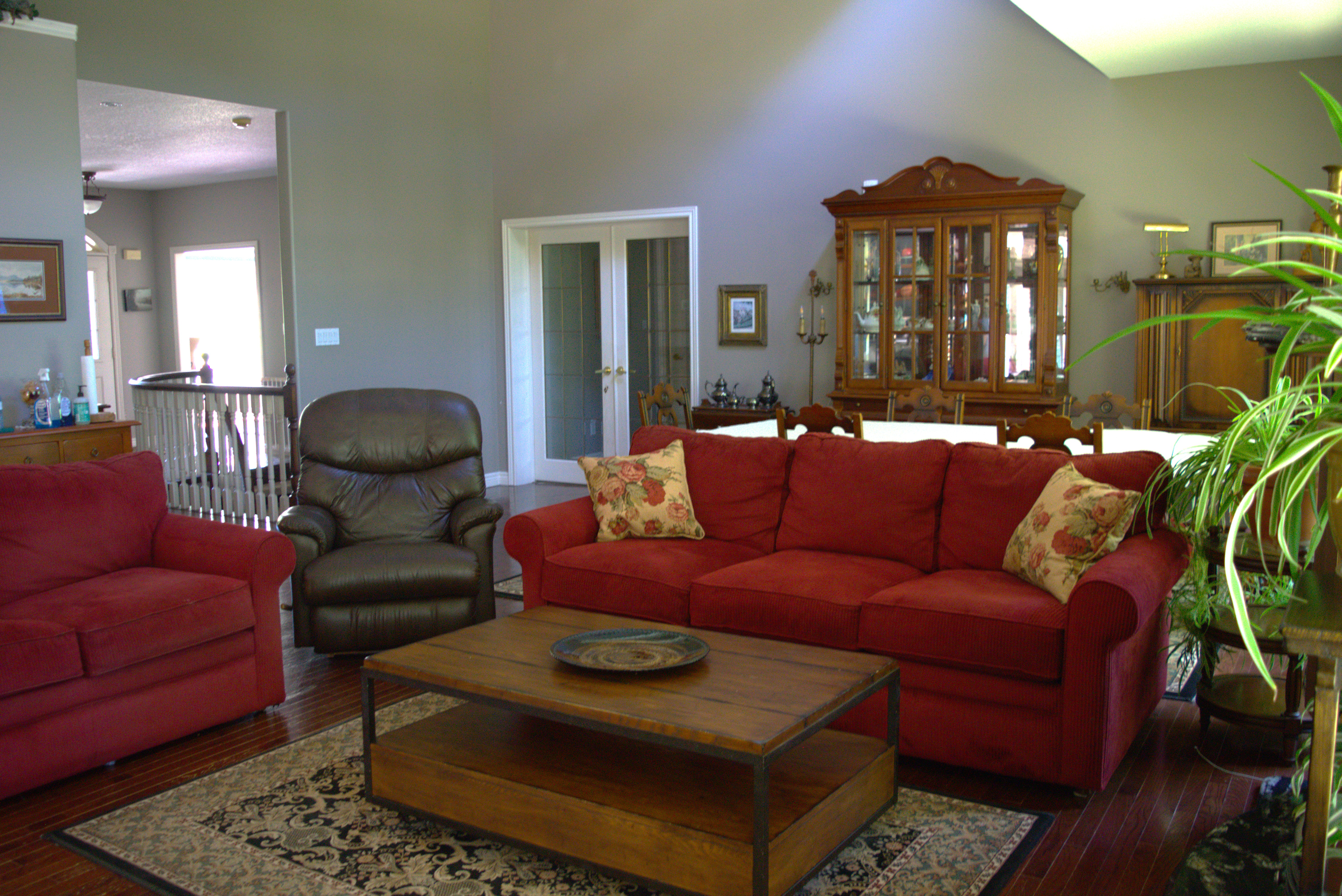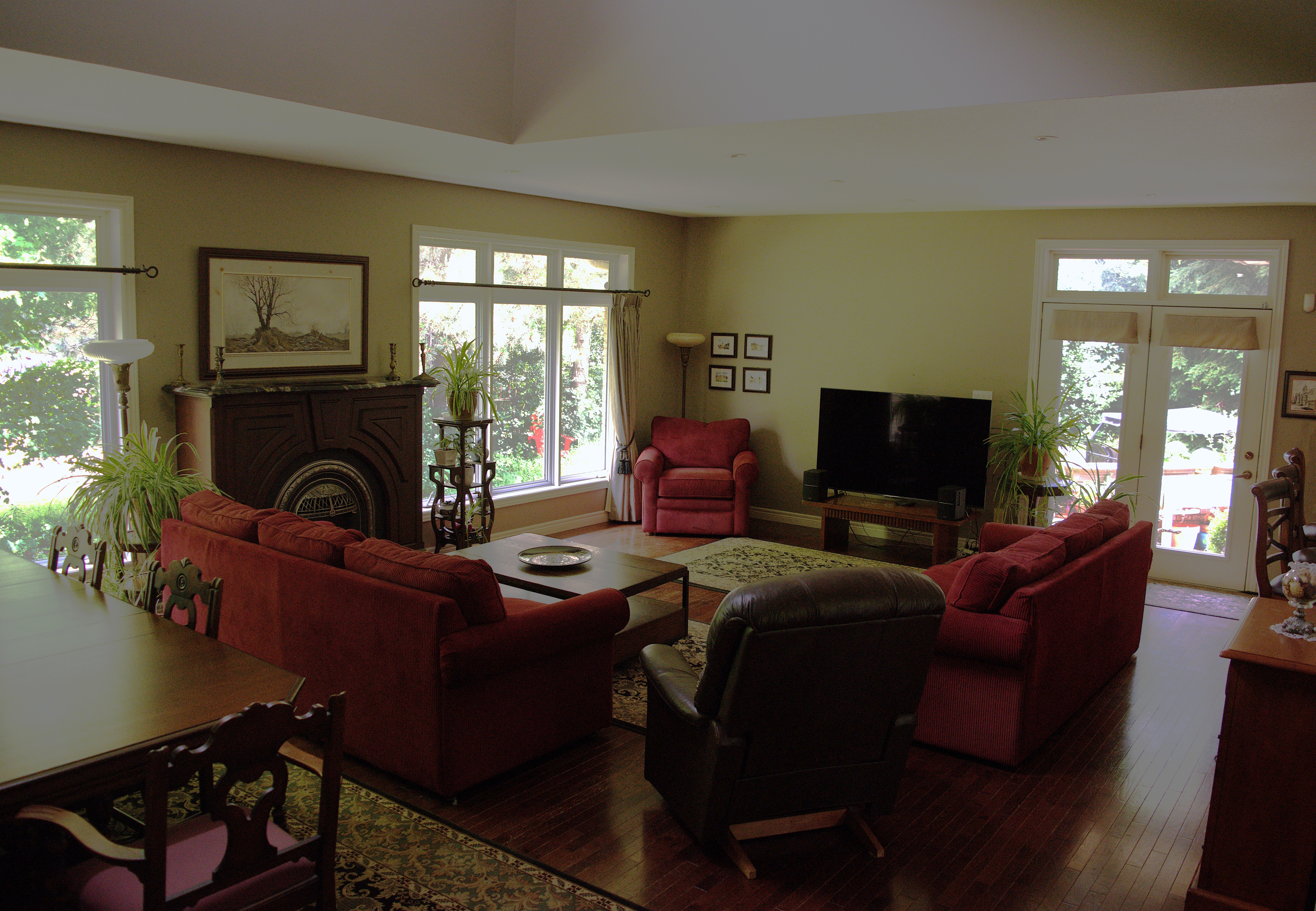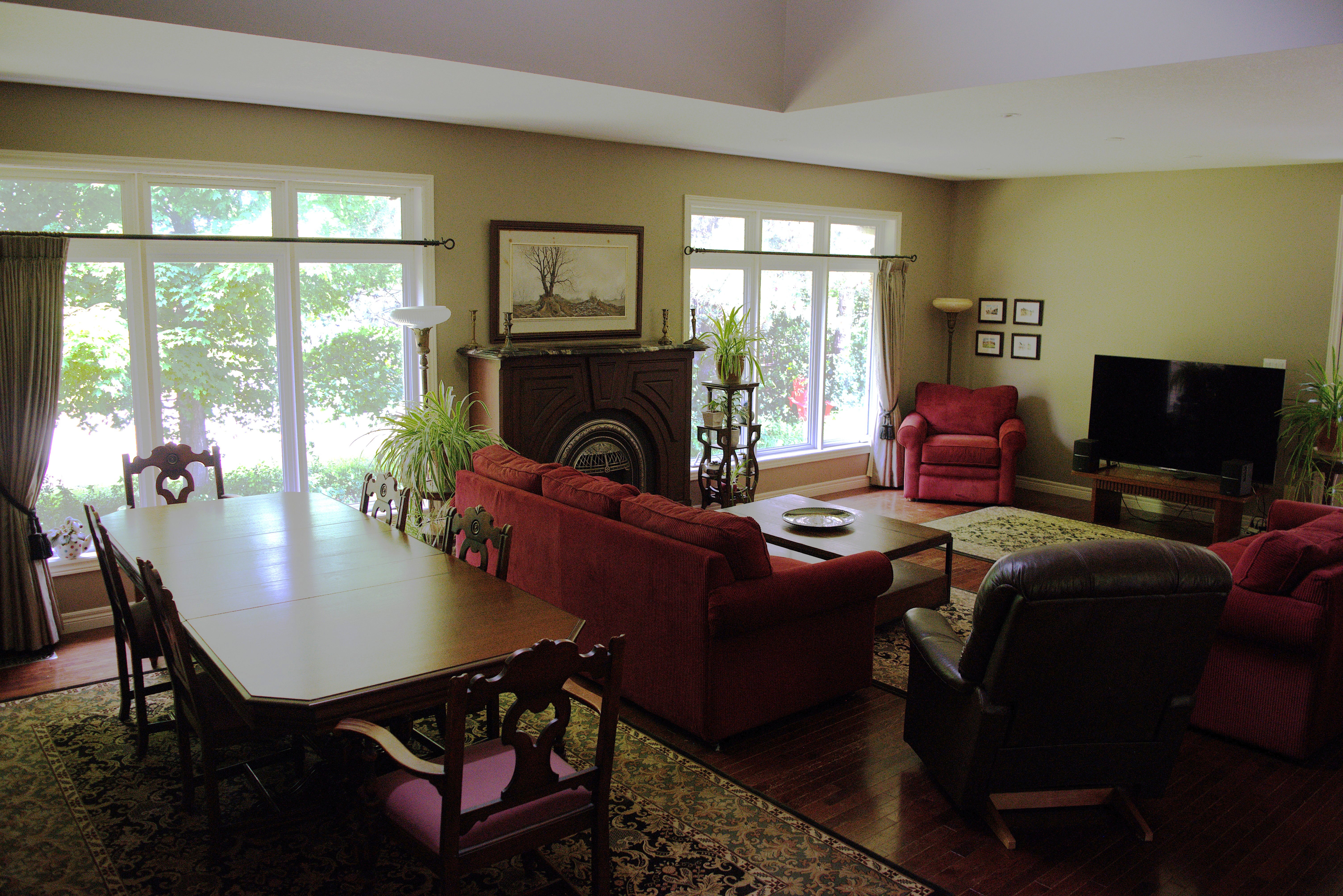 Inside, the open floor plan has the primary bedroom suite with walk-in closet and four piece bathroom, the large family room and dining room area, with high vaulted ceiling, hardwood floors, windowed back wall, complete with a beautiful Valor Windsor Arch gas coal-look fireplace with a remote that works without the need for electricity in the event of an outage and heats approx. 1,100 sq. ft, the kitchen, a three piece bathroom, the laundry room and two additional rooms for use as bedrooms, offices or dens.